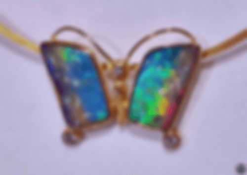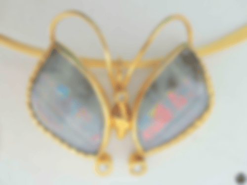 Hier habe ich aber zwei recht große, zusammengehörende Opale bekommen. Die Opale sind zwar nicht in Flügelform geschliffen, eignen sich aufgrund ihrer Form aber ganz hervorragend für einen Schmetterling.