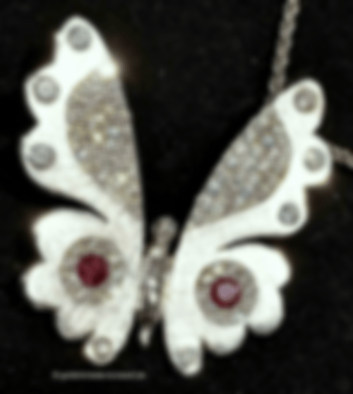 Der Falter aus Paladiumweißgold 585 ist üppig besetzt mit 82 Brillanten.