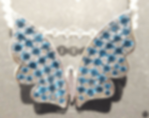 Bei diesem zarten Falter sind beide Flügel komplett mit blauen Brillanten überzogen, die zusammen mit dem Weißgold herrlich k ühl wirken - perfekt für einen warmen Sommer.